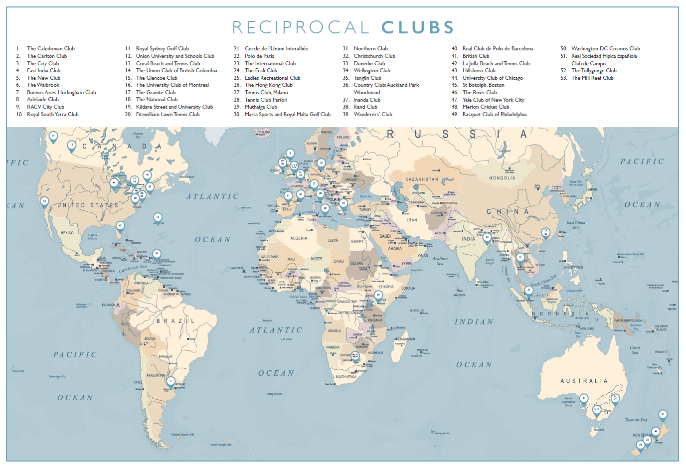 Members of reciprocal clubs are entitled to visit The Hurlingham Club 14 times in any one calendar year. To see an overview of the clubs we are partnered with, please click on the map below.
